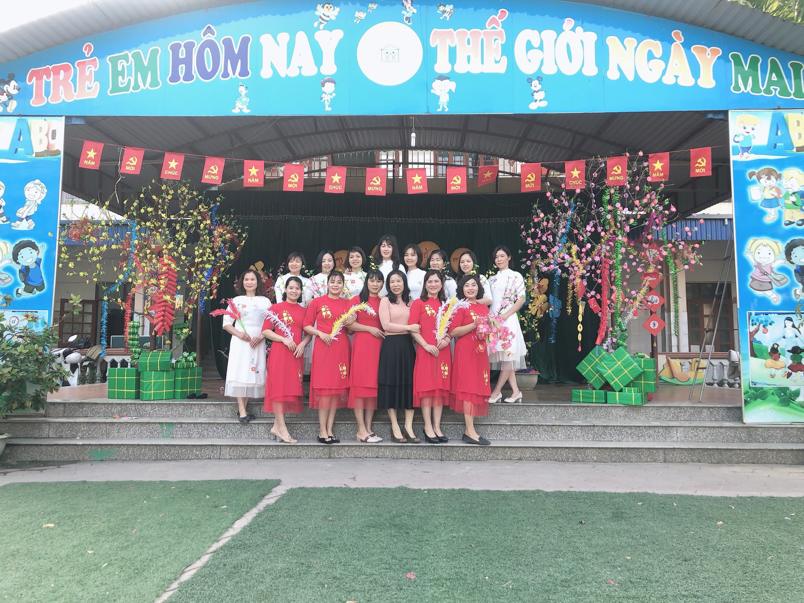 - Tháng 12/2015 đến nay đồng chí Nguyễn Thị Oanh làm hiệu trưởng, hiện tại trường có tổng số 38 người, trong đó BGH: 03 đc, giáo viên: 27 đc, cô nuôi: 06 đc, kế toán: 01 đc.